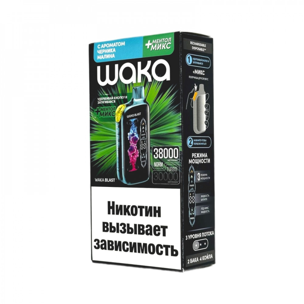 WAKA BLAST 38000 Hard - Черника малина + ментол микс - купить в Северске
